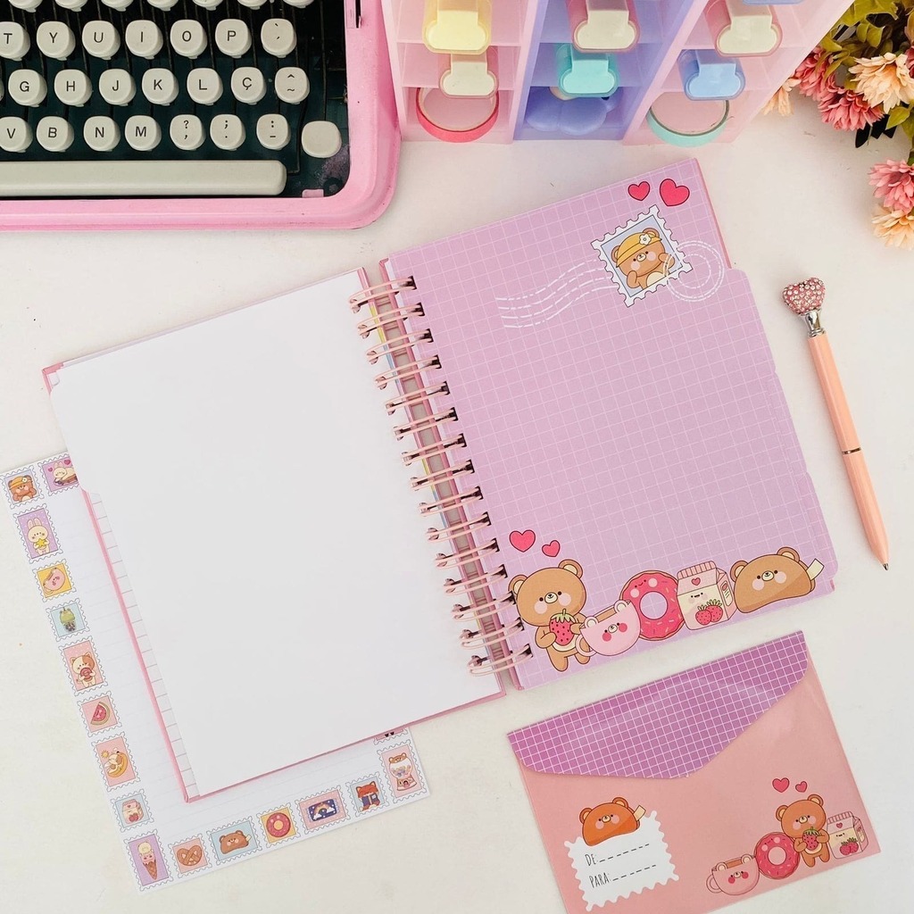 >> O tamanho A5 conta 100 com folhas decoradas 120gr (foto), o tamanho universitário conta com 100 folhas pautadas brancas.